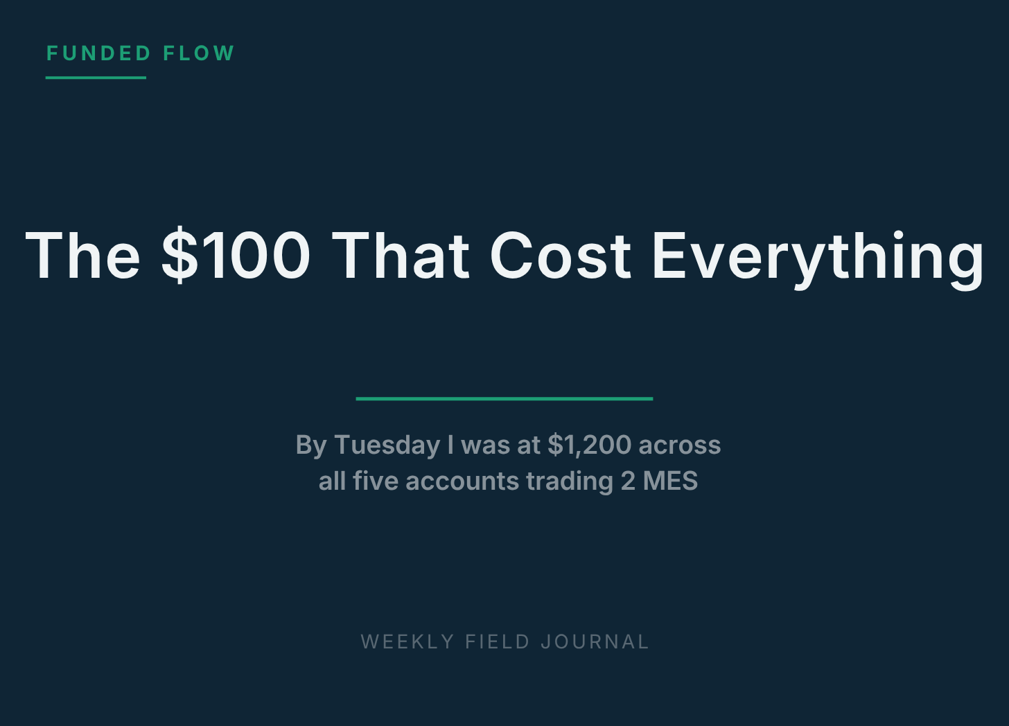 The contract size shift is what finished me. If I had stayed on 2MES I would still have the accounts, probably with a real drawdown but intact. Switching to 1ES in the middle of a spiral, at around 2am, because I wanted to move faster and go to bed, that’s not a trade decision. That’s desperation logic.